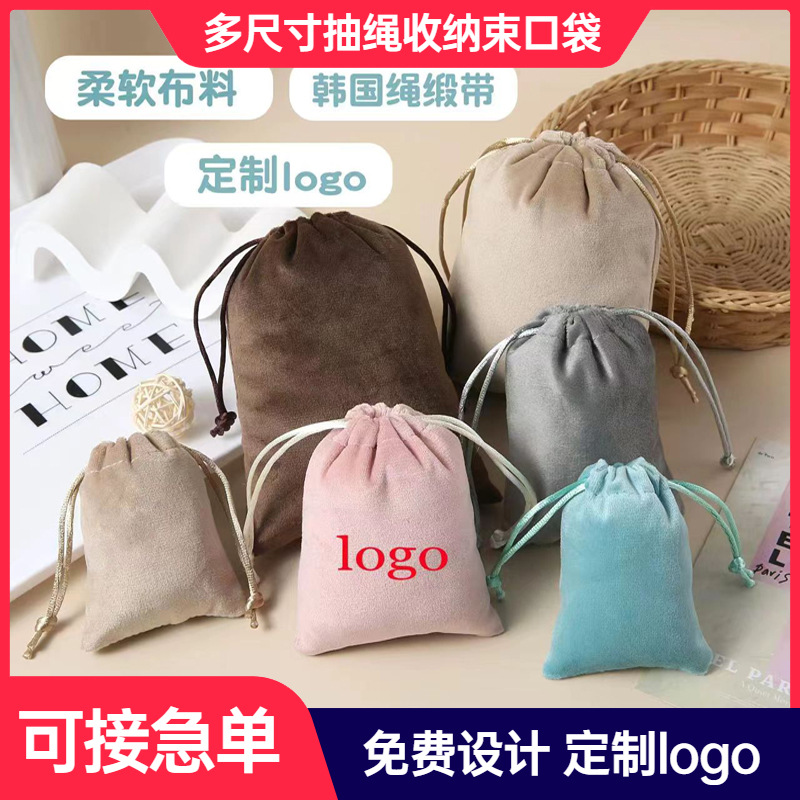 Drawstring Flannel Bag Custom Jewelry Packaging Bag Printable LOGO Seal Storage Gift Flannel Bag