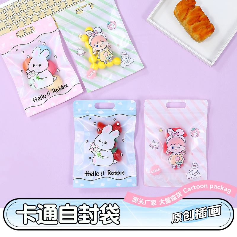 Cartoon Frosted Hand-Held Self-Sealing Gift Bag Transparent Jewelry Zipper Packaging Bag Ins Sealed Bag Zipper Type
