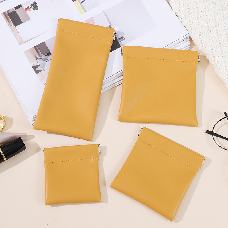 PU waterproof shrapnel automatic closing storage bag carry-on jewelry leather bag lipstick data line glasses storage bag