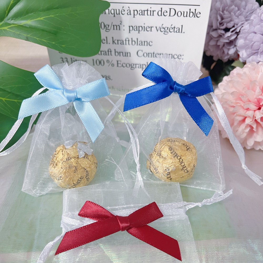 7*9 small size mini gift bag colorful bow drawstring bag translucent white organza drawstring pocket