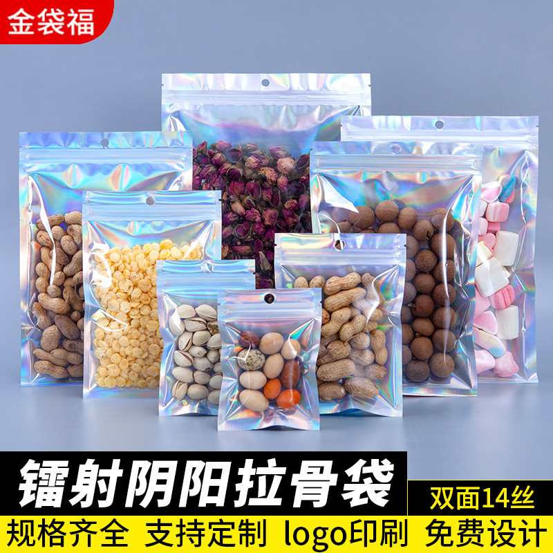 Laser Yin and Yang Self-sealing Bag Plated Aluminum Foil Jewelry Earrings Necklace Sealed Pocket Mobile Phone Case Plastic Packaging Bag