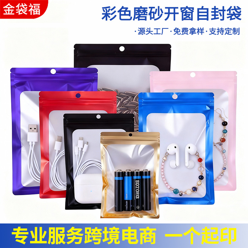 Colorful Yin-Yang Self-Sealing Bags, Transparent Frosted Aluminum Foil Bags, Sealed Bags, Window-Opening Bags, Jewelry Ins-Style Storage Bags