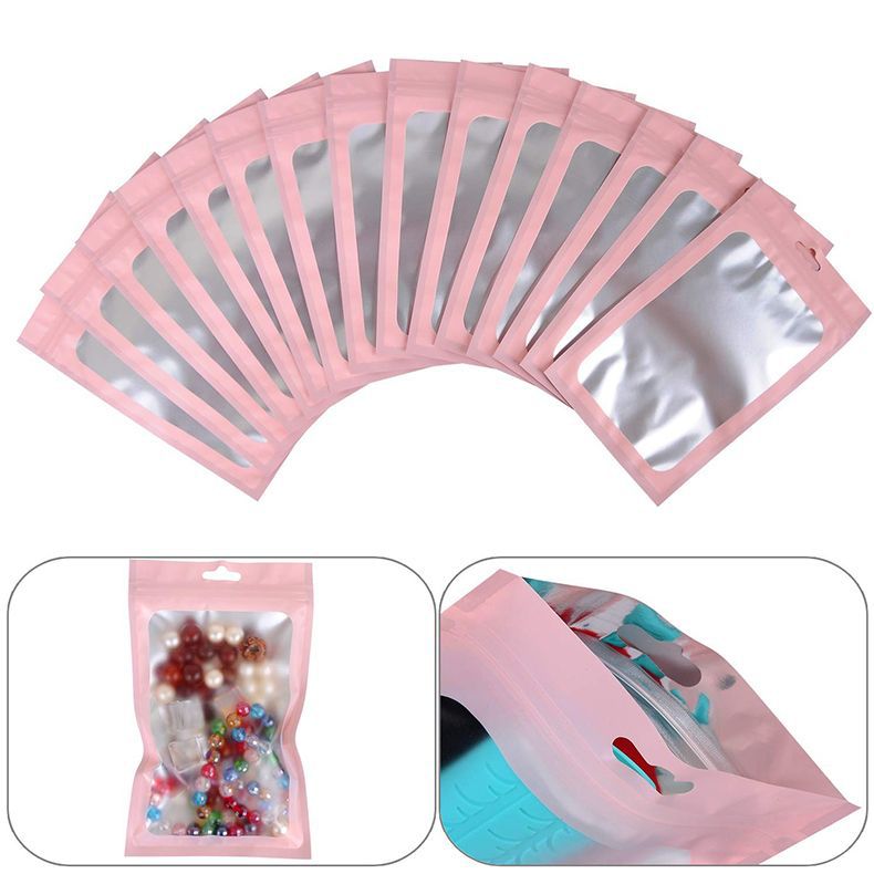 Pink color window aluminum self-sealing bag fishing gear pendant jewelry bag mobile phone case plastic bag pearlescent bag beauty bag