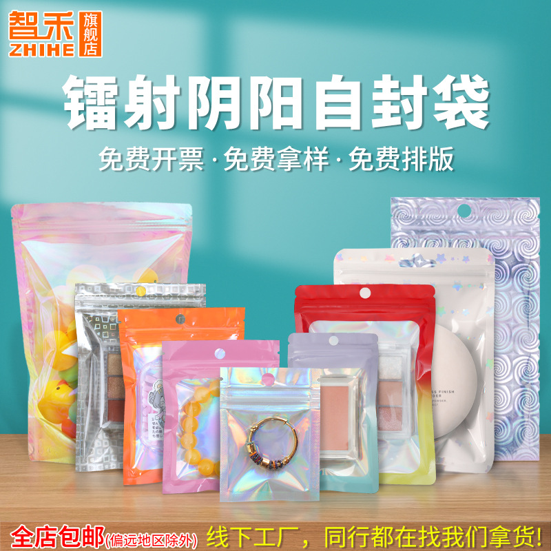 Factory in stock laser self-sealing bag colorful jewelry storage sealed bag magic plastic sealed bag yin and yang aluminum foil bag