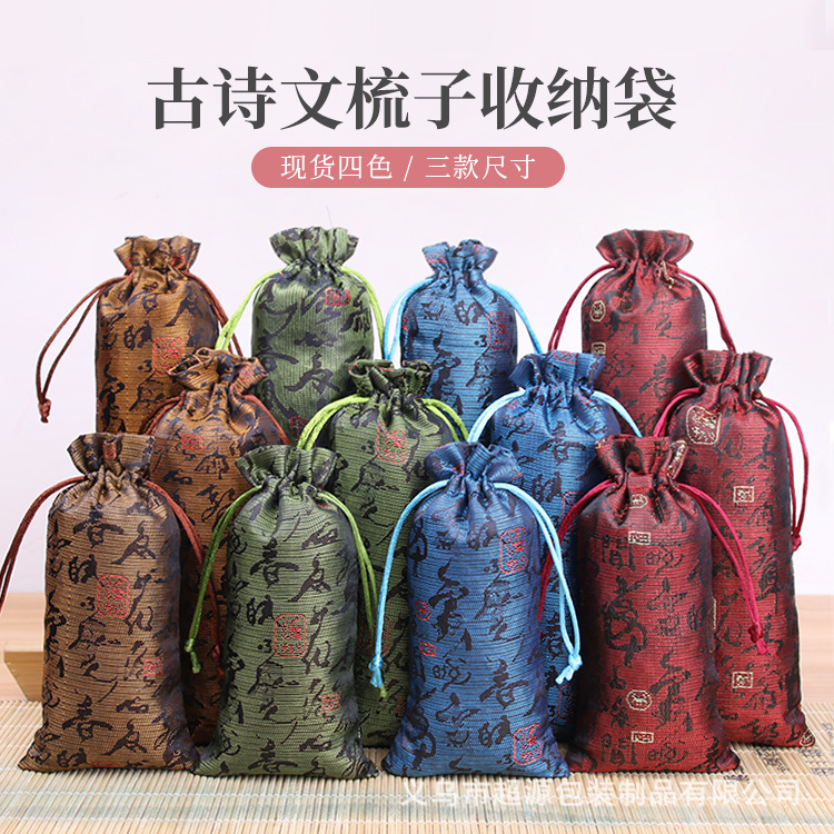 Peach Wood Comb Storage Bundle Pocket Small Bag High-end Embroidered Jewelry Bag Drawstring Retro Chinese Style