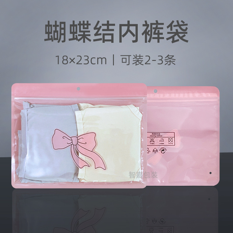 High-grade pink bow underwear packaging bag wholesale jewelry safety pants socks self-sealing bag zipper bag plastic bag
