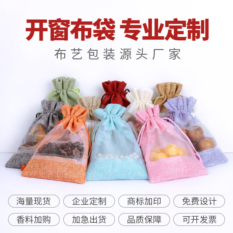 Composite imitation linen bag spot drawstring linen bag jewelry gift packaging bag linen storage bag wholesale