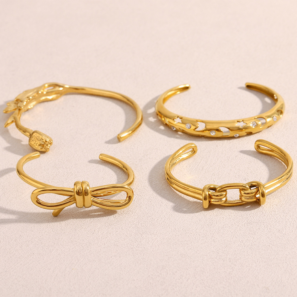 European and American cross-border temperament trendy jewelry stainless steel 18K gold-plated bow line star and moon hollow flower bracelet
