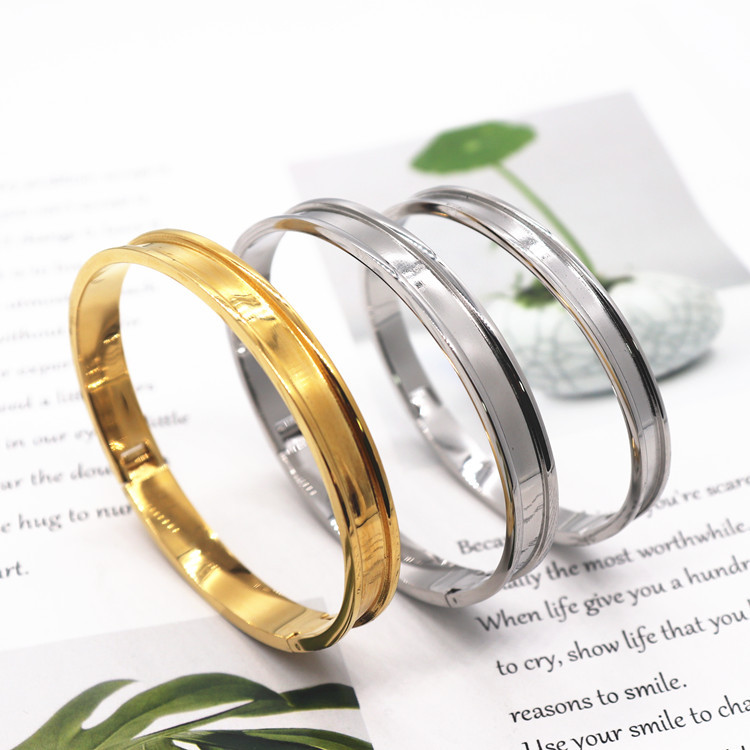 Stainless steel groove bracelet European and American fashion buckle plain ring Women's bracelet titanium steel jewelry diy medieval leather bracelet