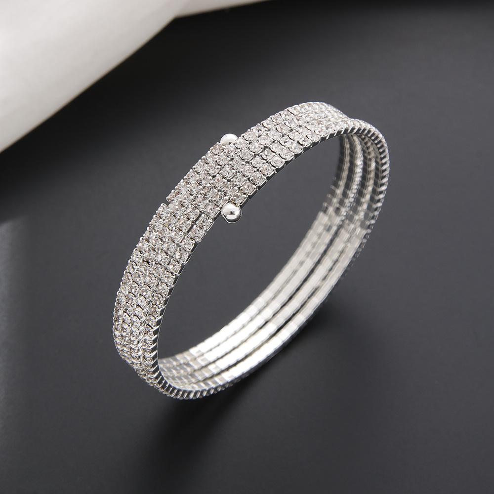 Cross-Border Supply Fashion Classic Bracelet Full of Diamonds Four Rows of Steel Wire Elastic Bracelet Arm Chain Bridal Jewelry B152-4