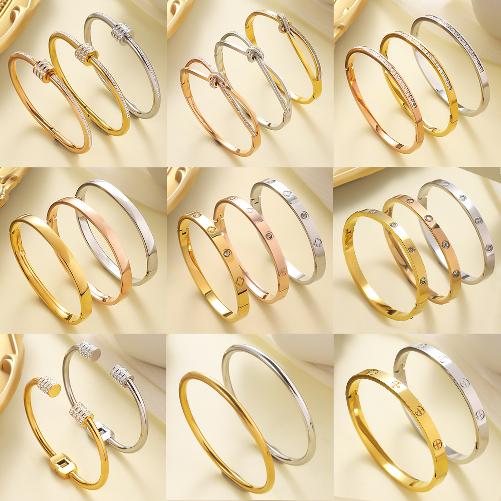 Jieding European and American Stainless Steel Bracelet Premium Classic Bracelet Titanium Steel Opening Bracelet 18k Bracelet Cross Border Jewelry