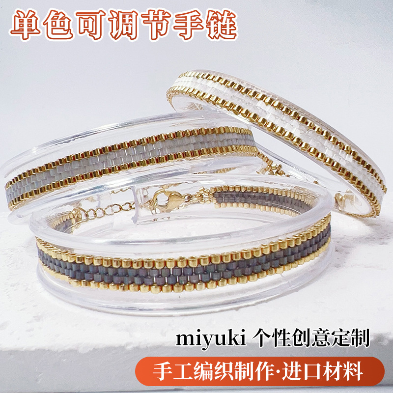 Simple Solid Color 304 Stainless Steel Adjustable Bracelet Bohemian Style Hand Woven Miyuki Monochrome Bracelet
