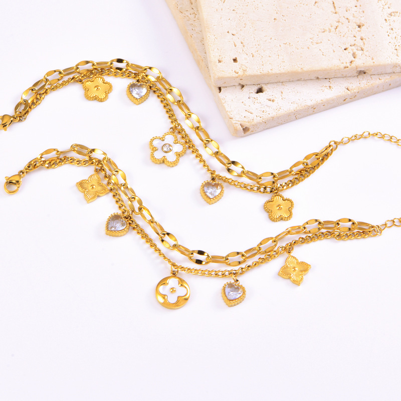 Niche Design Cross-border Stainless Steel Color-retaining Bracelet Baibei Five-leaf Flower Sticky Diamond Light Luxury Double-layer Stacked Fashion Bracelet