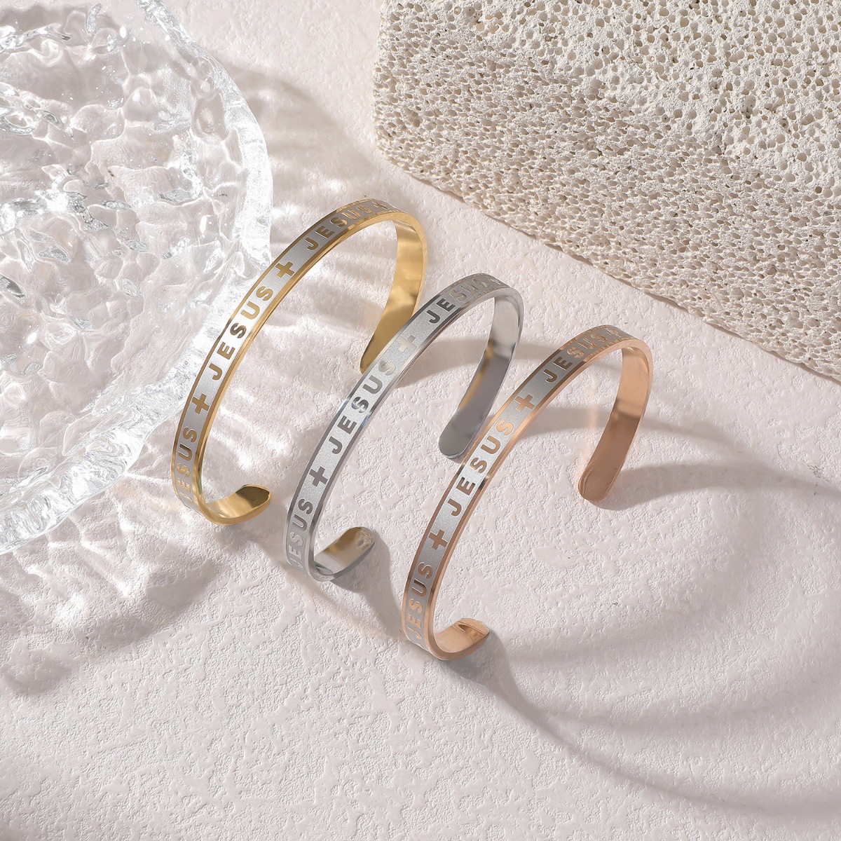 New Cross-Border 6mm Titanium Steel Bracelet with Adjustable Opening, High-End Letter Design, Simple and Versatile Stainless Steel Bracelet Wholesale
