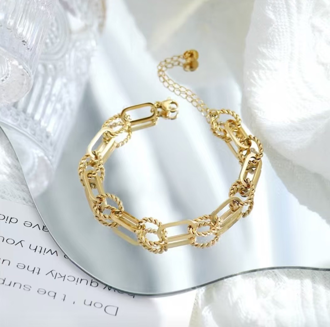 European and American Fashion Niche Simple Chain Bracelet Bracelet Bracelet Stainless Steel Plated 18K Gold Slingshot Buckle Pin Bracelet