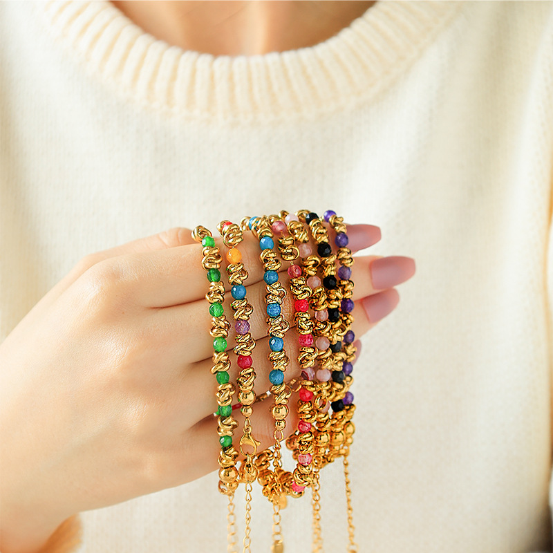 European and American Niche Stainless Steel Gold Plated Candy Color Exquisite Bracelet Simple Temperament Retro Bracelet Jewelry for Women