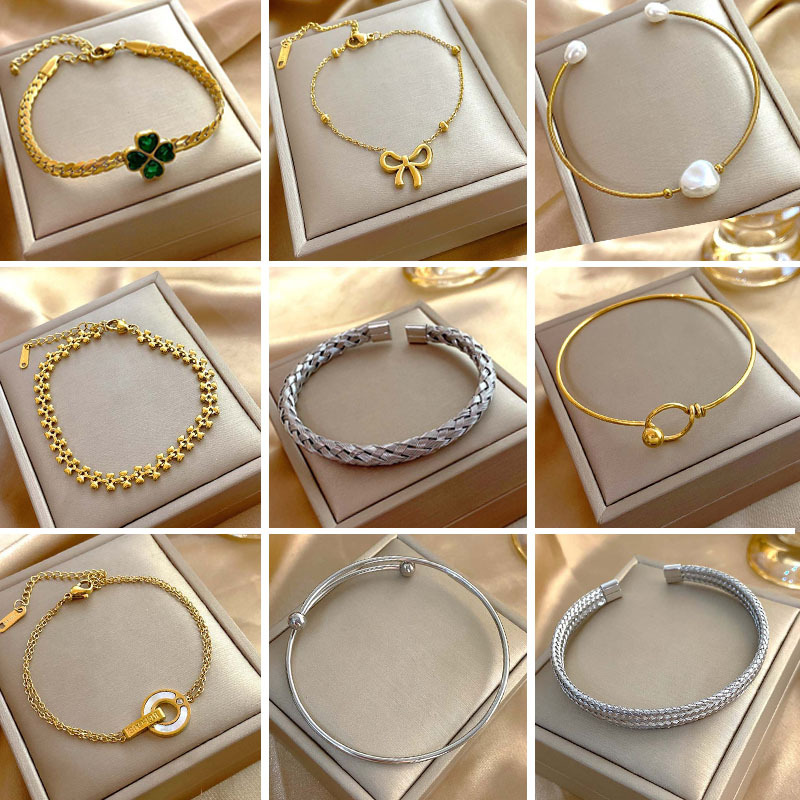 Cross-Border European and American Ins Style Accessible Luxury Titanium Steel Bracelets for Men and Women Normcore Fashion Bow Pearl Stainless Steel Bracelets
