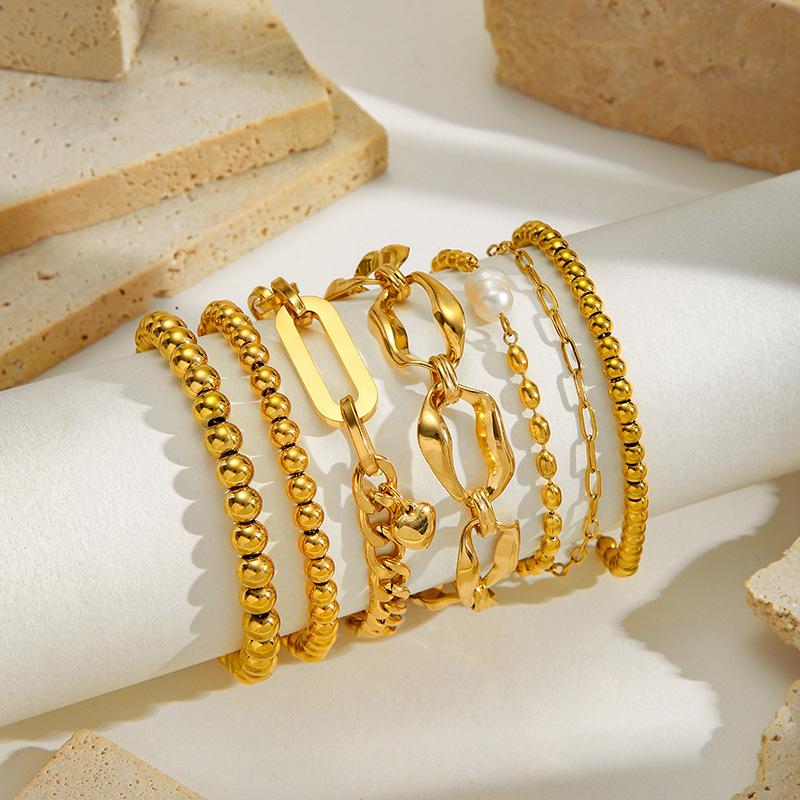 European and American Cross-Border New Ins Fashion Hand Jewelry Stainless Steel 18K Gold Large and Small Gold Beads Personalized Simple Bracelet for Women Wholesale