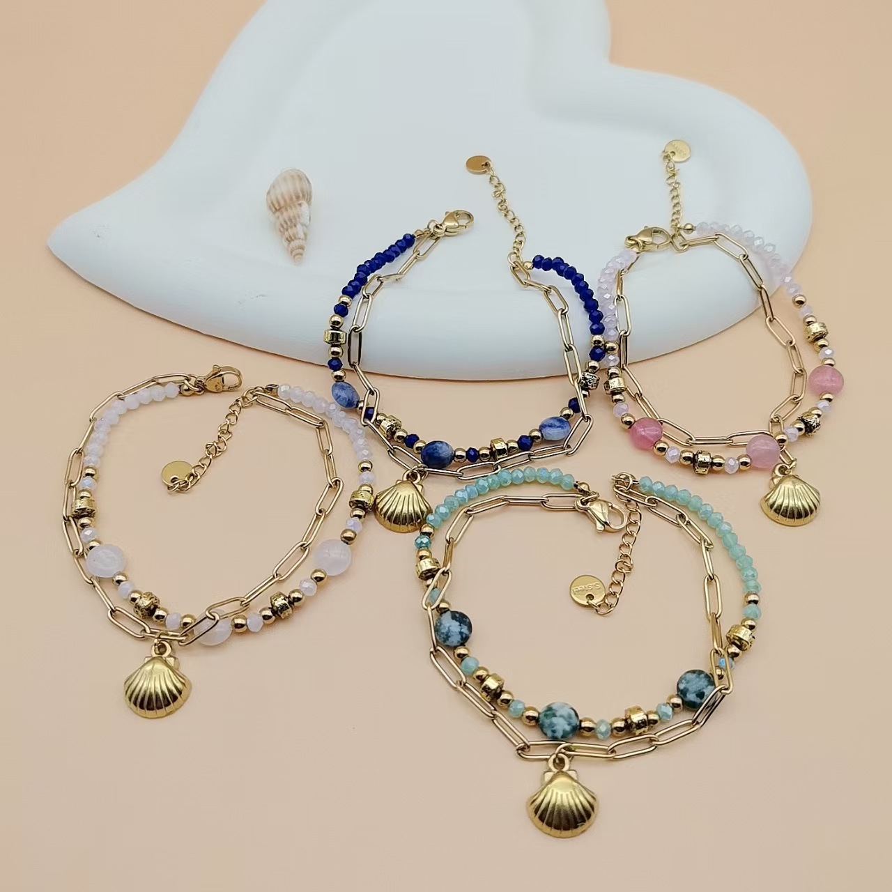 Cross-border jewelry explosive stainless steel shell bracelet Bohemian natural stone beaded bracelet double-layer women's bracelet