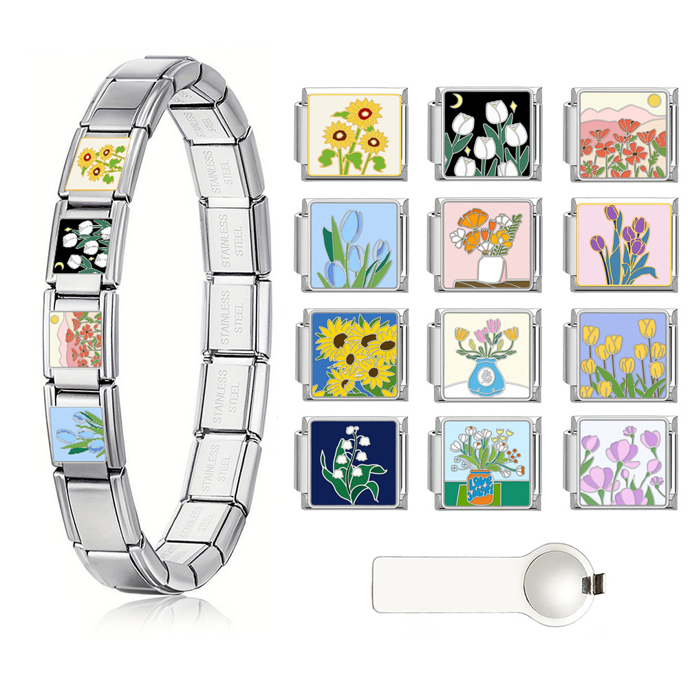 New Stainless Steel Italian Module Bracelet Dly Fashion Flower Pattern Can Be Freely Matched and Spliced
