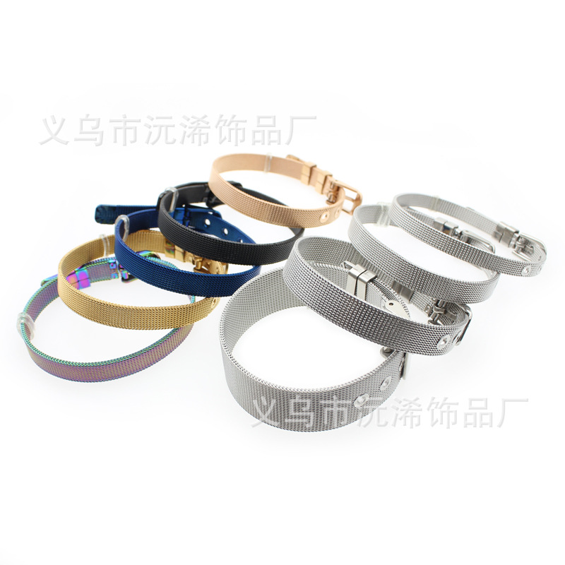 6-18mm Stainless Steel Color Steel Mesh Band Bracelet Cross Border Fashion Titanium Steel Adjustable Mesh Band Bracelet