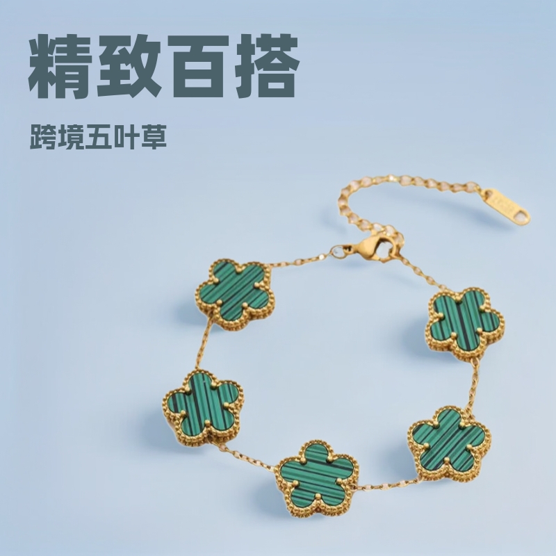 Cross-Border Lucky Five-Leaf Clover Chain Bracelet, European and American Fashion, Simple New Style, Versatile