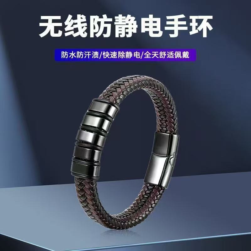 Anti-Static Bracelet Men's Business Stainless Steel Leather European and American New Retro Style Magnetic Woven Bracelet Men's Wholesale