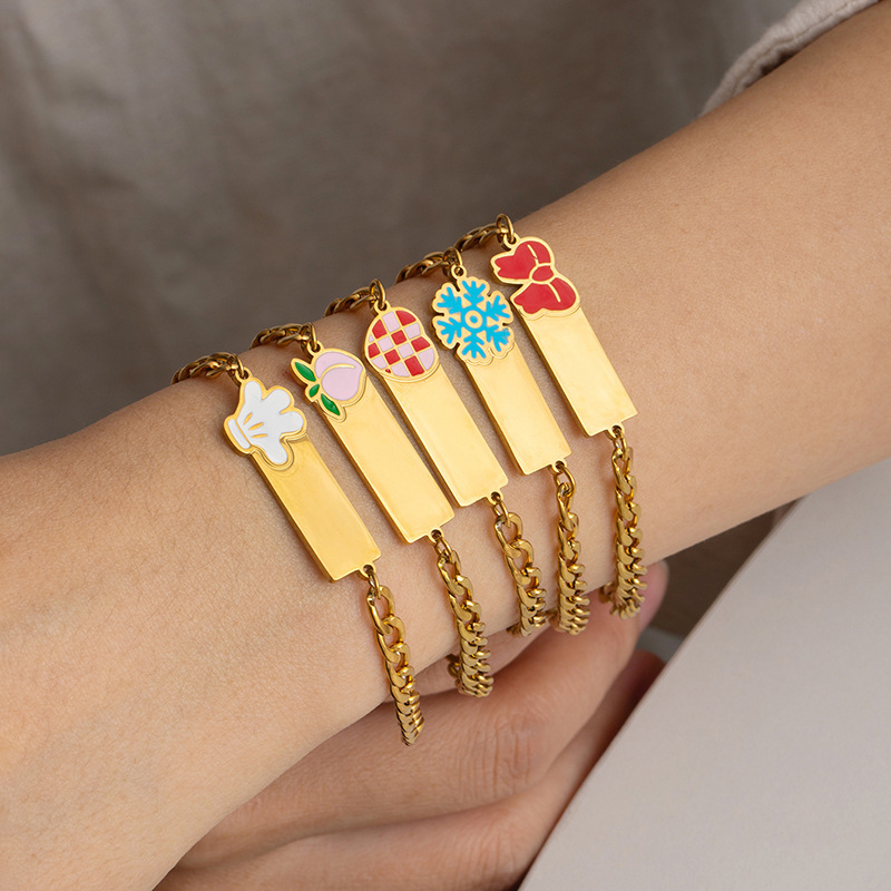 Cross-Border Stainless Steel Bow Square Bracelet for Women Cartoon Mickey Titanium Steel Bracelet Dripping Glaze High-End Design Jewelry