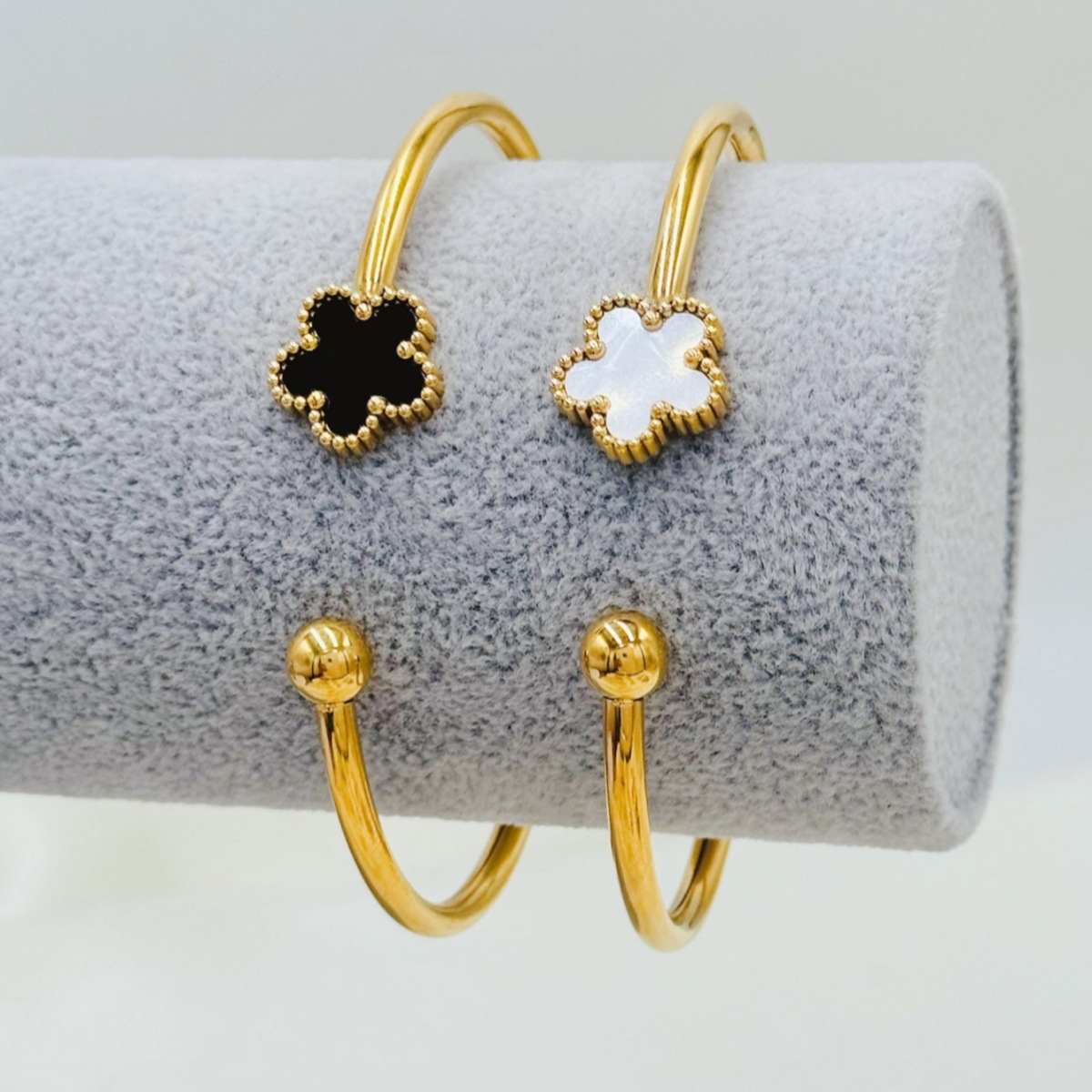 Stainless Steel Hollow Shell Plum Blossom Bracelet Vacuum Post Electroplated Real Gold European and American Style Advanced Sense Bracelet