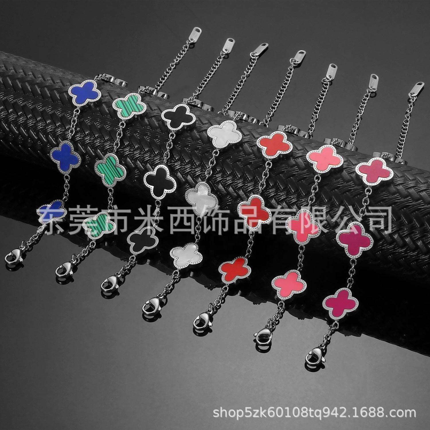 Pure handmade polished non-fading Internet-famous fashion four-leaf clover titanium steel bracelet women's shell fashion personalized design hand jewelry