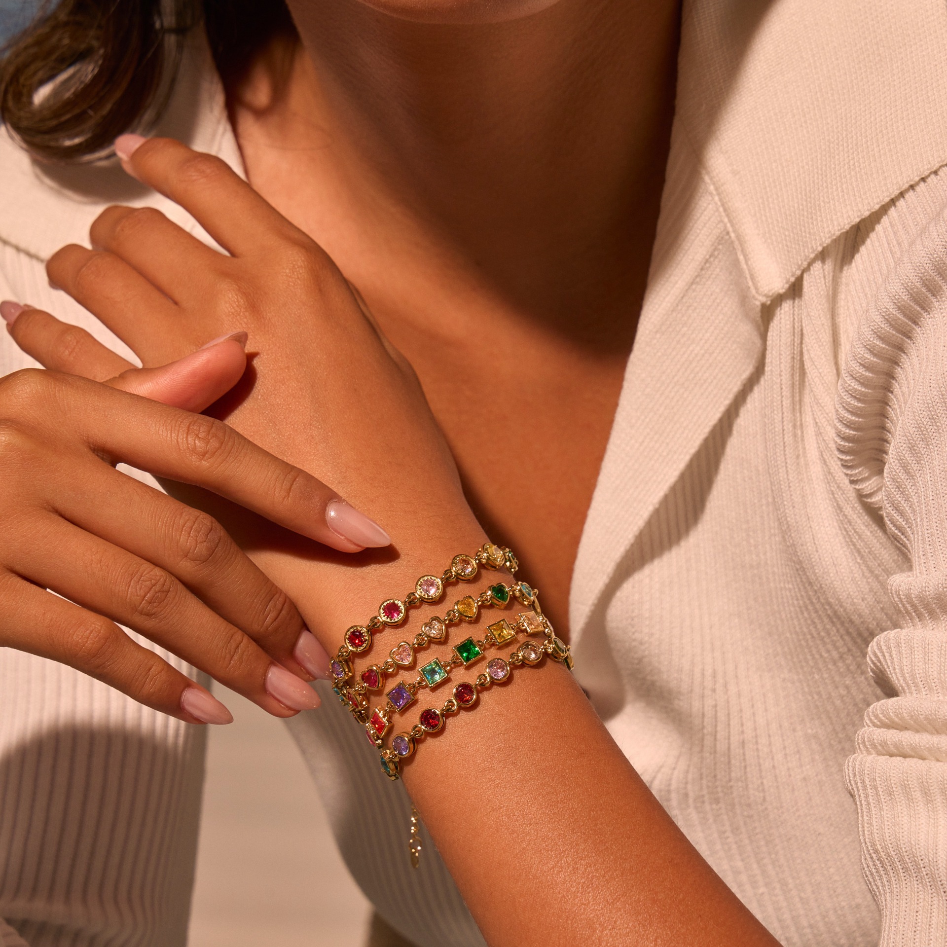 Cross-Border Autumn and Winter New Colorful Zircon Bracelet Stainless Steel Bracelet Plated with 18K Gold Light Luxury High-End Jewelry Wholesale
