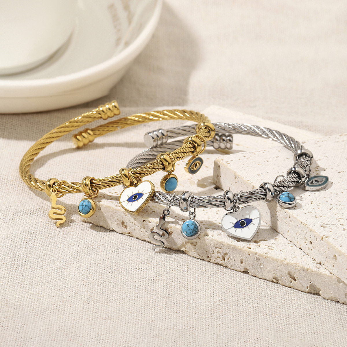 Cross Border Turkey Stainless Steel Vacuum Plated Titanium Steel Bracelet Women's Fashion Light Luxury 18K Gold Titanium Steel Wire Bracelet
