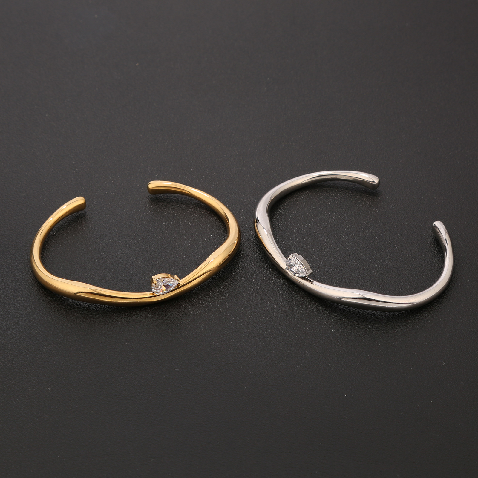 Cross-Border Popular Stainless Steel Zircon Open Bracelet Casting Irregular Non-Fading Couple Bracelet Jewelry Batch