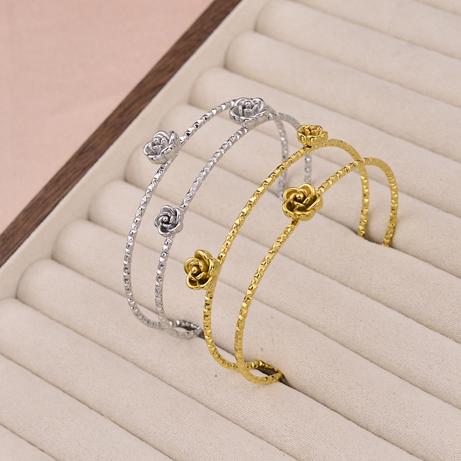 Fashionable Light Luxury Exquisite Sunflower Rose Flower Stainless Steel Open Bracelet for Women with a High-End Ins Style