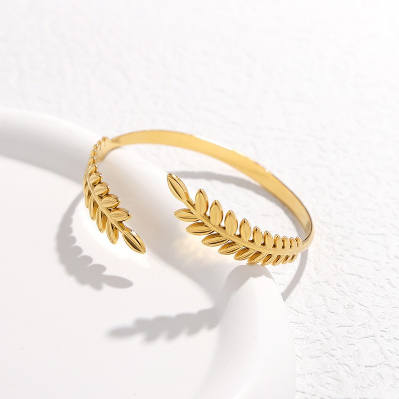 2024 European and American fashion personality leaf wheat ear open oil pressure C- shaped stainless steel bracelet for couples cross-border