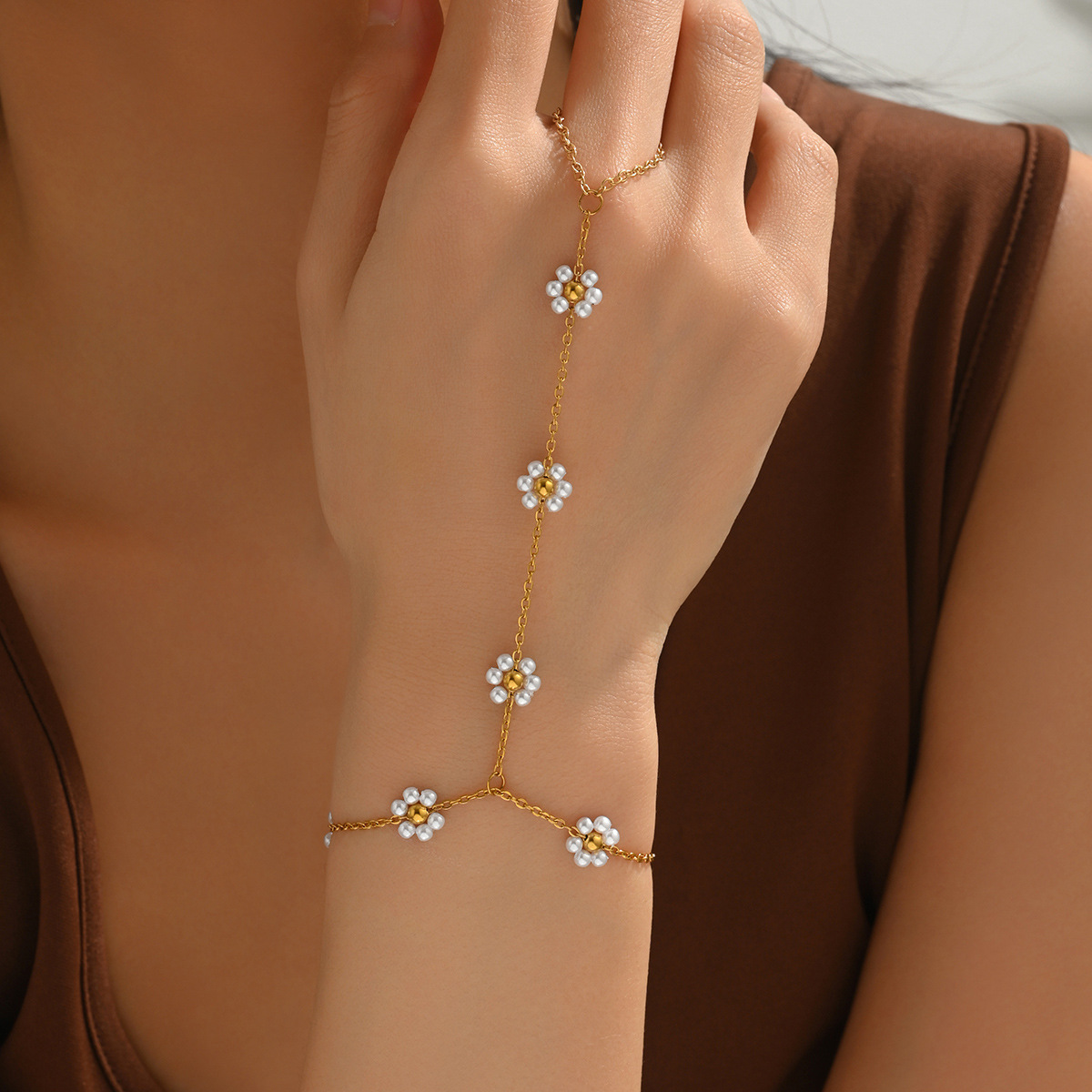 Amazon's Best-Selling New Simple White Flower Finger Chain Personalized Versatile Imitation Pearl Stainless Steel Bracelet Bracelet