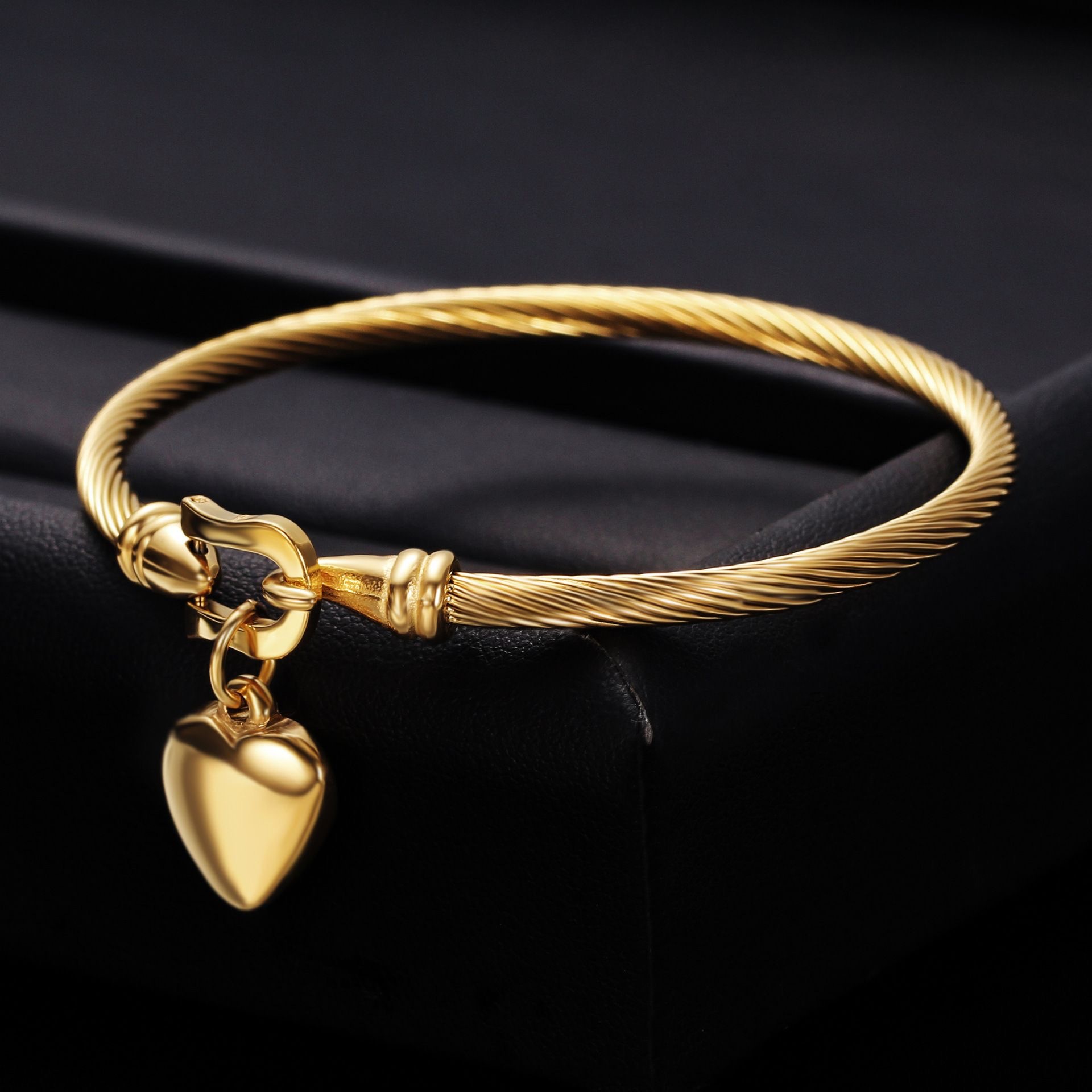 European and American New Titanium Steel Wire Heart Pendant Bracelet Vacuum Electroplating Non-Fading High-End Horseshoe Bracelet Jewelry