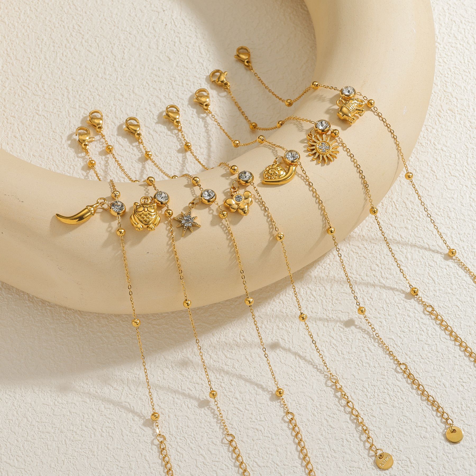 French-Style 18K Gold Light Luxury Diamond Owl Pendant Bracelet Stainless Steel Personalized Creative Design Bracelet Wholesale