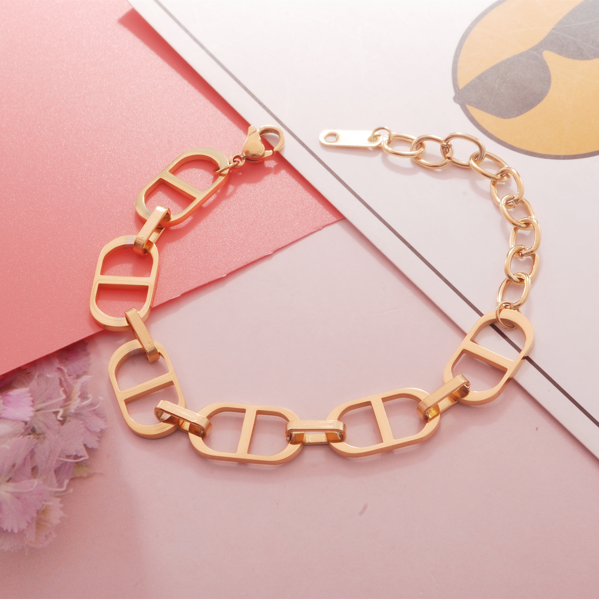 European and American Double D bracelet titanium steel bracelet hip hop simple Pig Nose chain stainless steel bracelet cross-border accessories Internet celebrity style