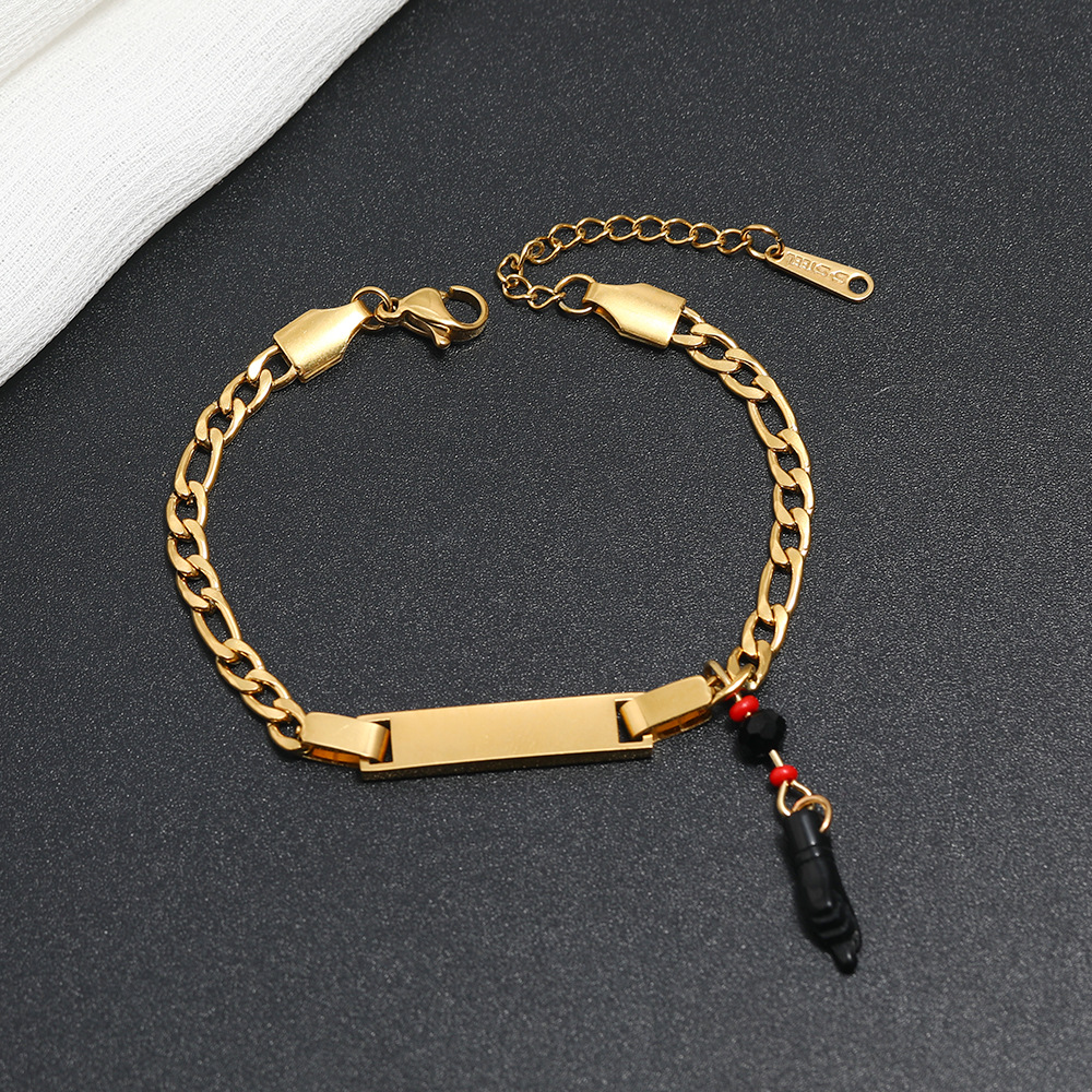 Stainless Steel Electroplated Real Gold Bracelet with Black Little Hand Devil's Eye Bracelet Cross-Border E-Commerce Hot Selling Trendy Chain