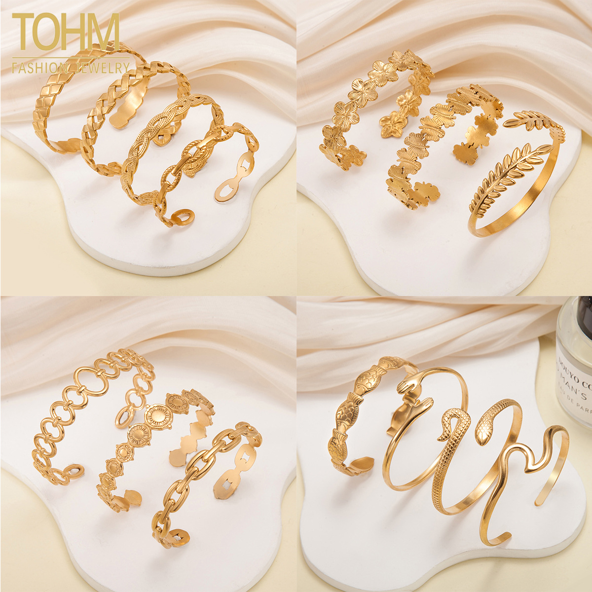 Tohm Cross-Border Accessible Luxury Retro Stainless Steel Bracelet Open Female Simple High-End Non-Fading Titanium Steel Bracelet