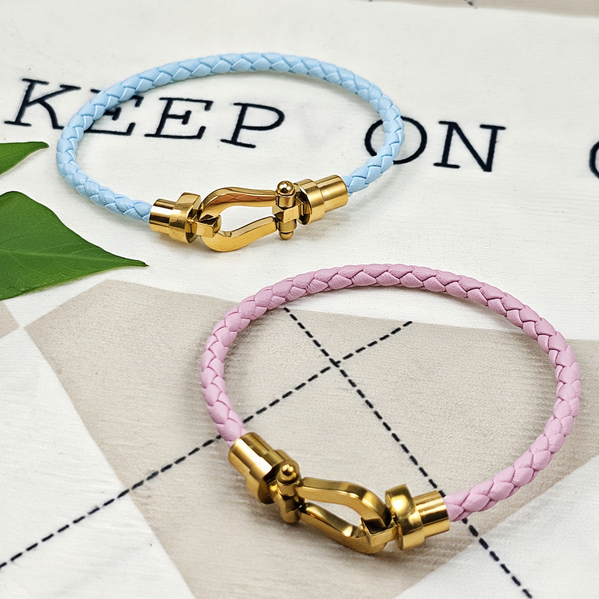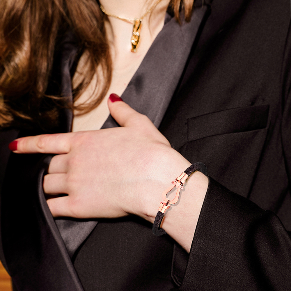 European and American explosions jewelry stainless steel bracelet women's fashion catwalk horseshoe buckle leather bracelet foreign trade wholesale