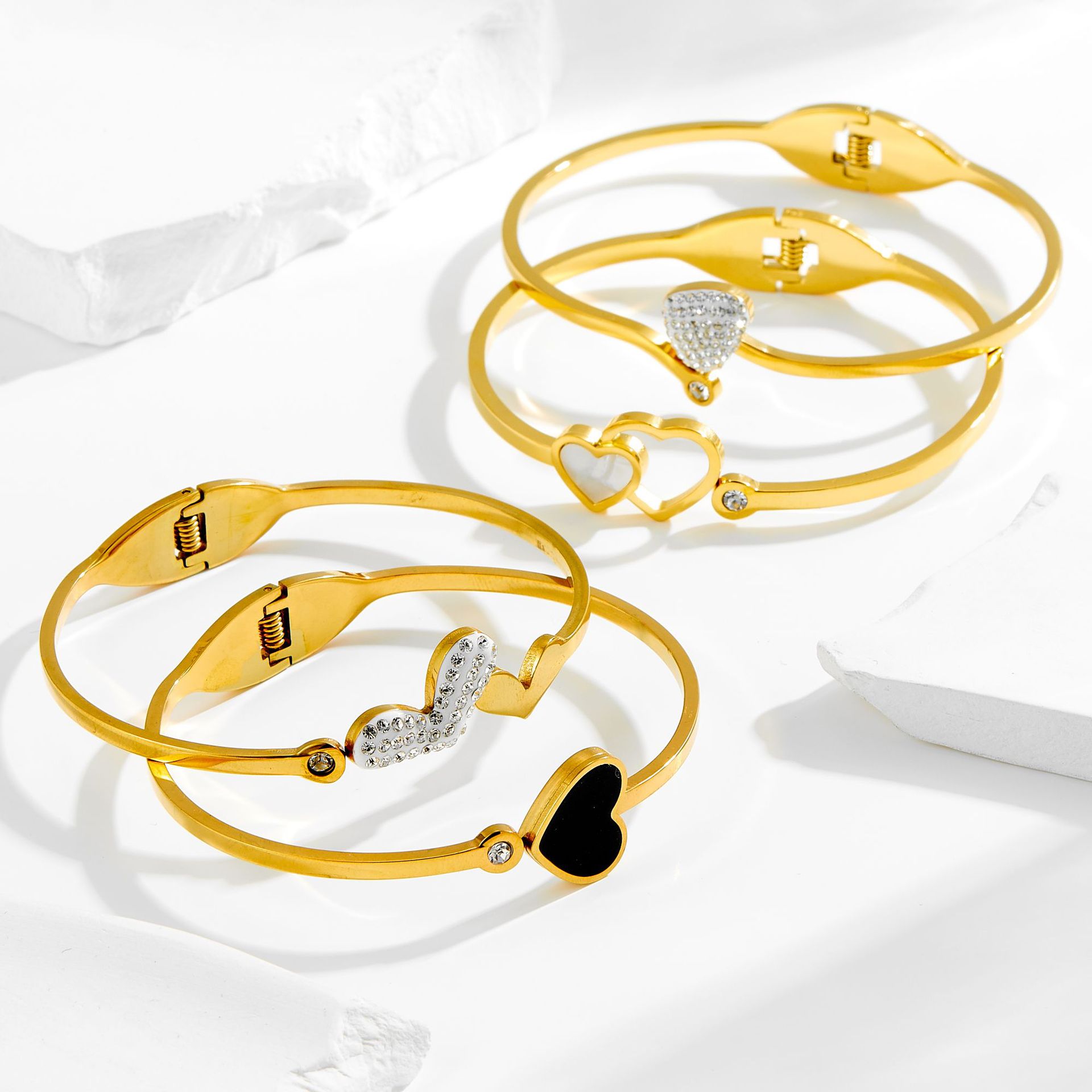 European and American ins style love buckle titanium steel bracelet women's fashion atmosphere crystal diamond heart-shaped smooth stainless steel hand ornaments