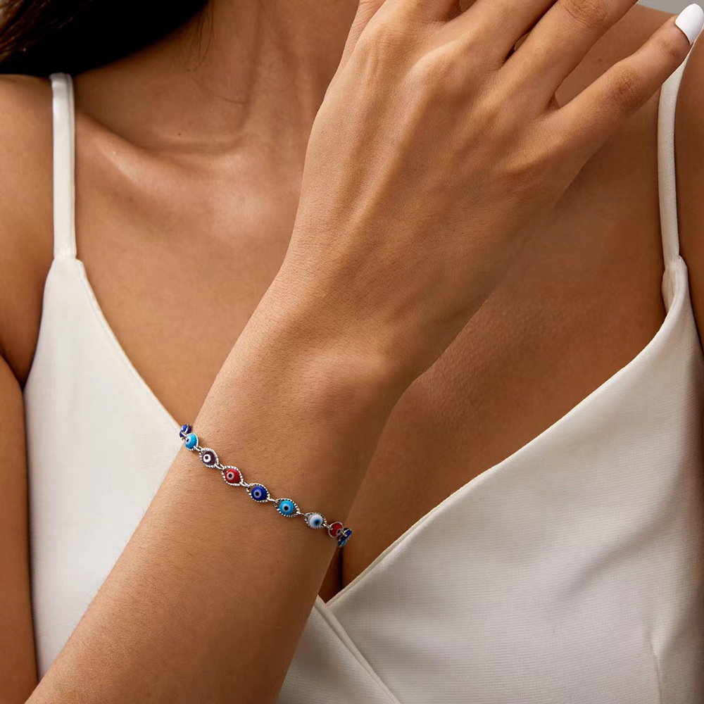 European and American Cross-border Jewelry Ins Style Niche Design Sense Simple Mixed Color Devil's Eye Stainless Steel Bracelet