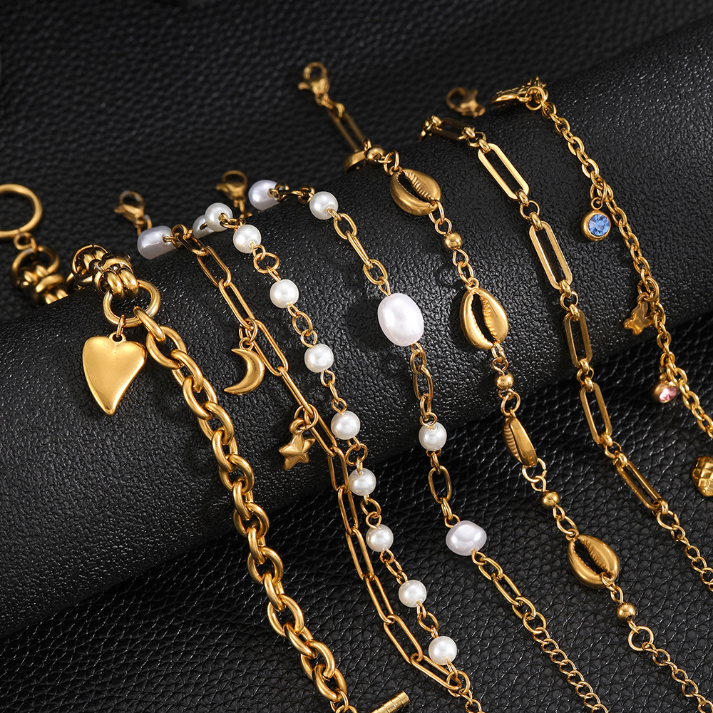 Stainless Steel Real Gold Heart-Shaped Bracelet Pearl Shell Multi-Layer Bracelet Women's Cross-Border European and American Butterfly High-End Bracelet