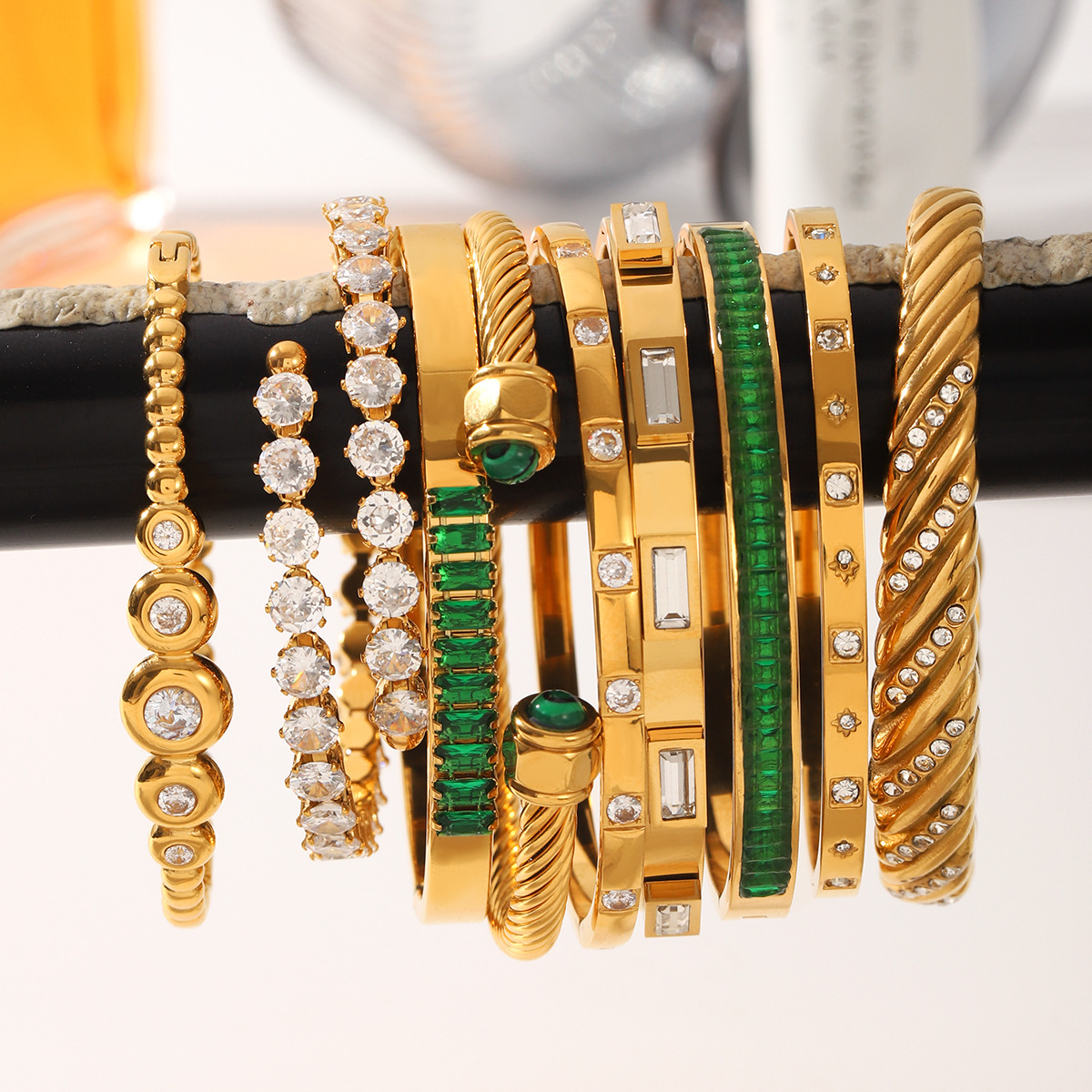 European and American Cross-Border Ins Simple Design Inlaid with Zircon Hammer Pattern Geometric Bracelet Plated with 18K Gold Stainless Steel Bracelet for Women