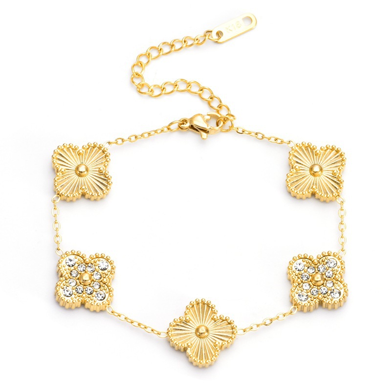 E-Commerce Hot-Selling Five-Flower Famous Brand Grass Bracelet, High-Grade 18K Gold-Plated, Non-Fading Laser Flower + Double-Sided Full Diamond Bracelet