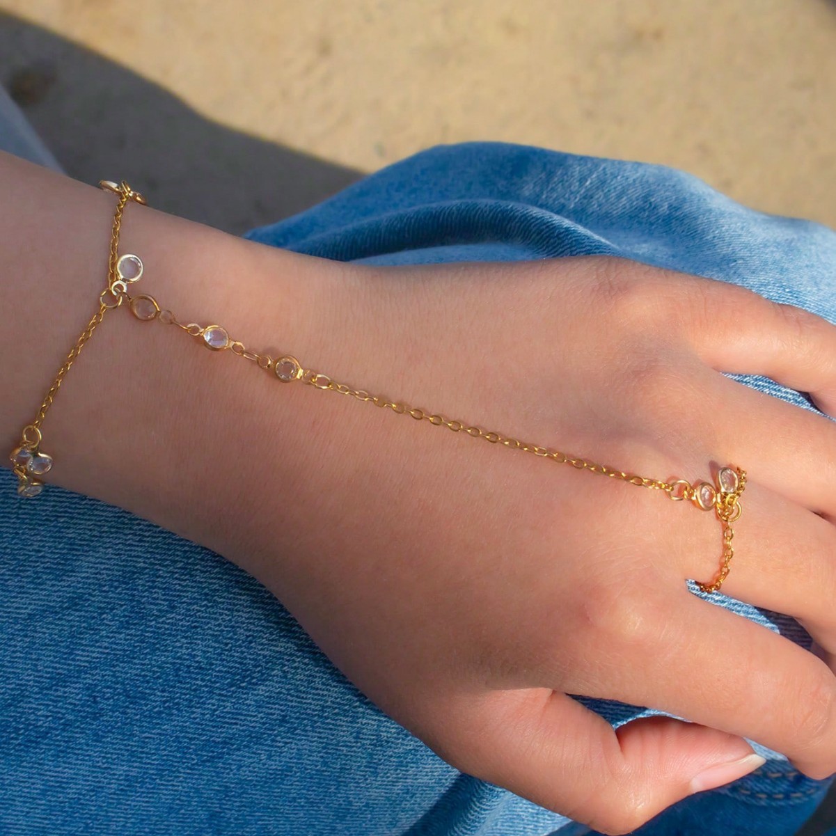 European and American cross-border jewelry fashion national style metal chain hand back chain women's wholesale simple rhinestone finger bracelet