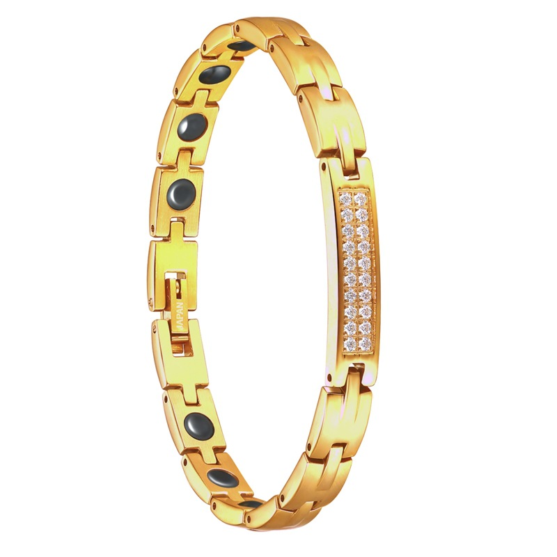 Double-Row Diamond 18K Gold Cnc Zircon Stainless Steel Women's Bracelet Titanium Steel Jewelry Japanese and Korean Export Jewelry Inlaid Light Luxury