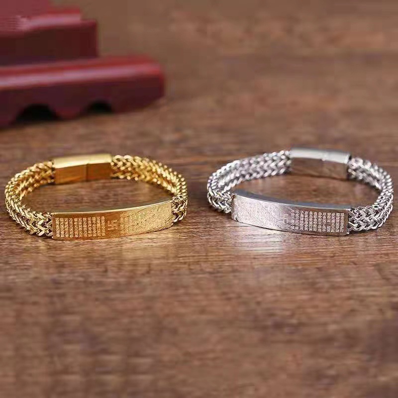 Titanium Steel Bracelet Thousand Character Bracelet Heart Sutra Watch with Stainless Steel Gold Bracelet Men's 18K Gold Bracelet Bangle